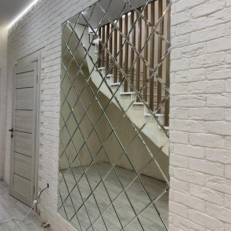 Использована зеркальная квадратная и треугольная плитка с фацетом.